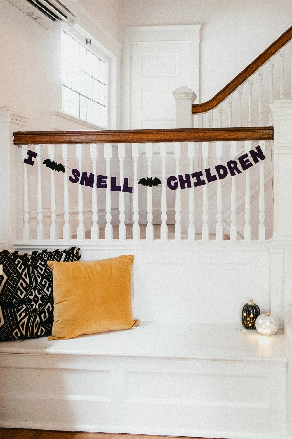 Hand stitched felt bat garland.